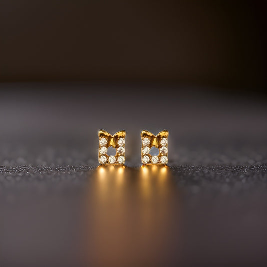 18KT Gold White Stone Gold Fish Fin Stud Earrings