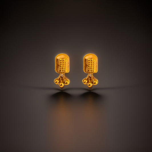18KT Gold Stone Diamond Pattern Stud Earrings.