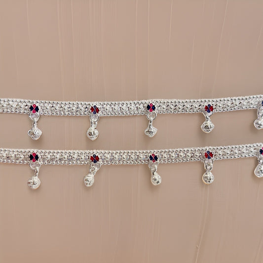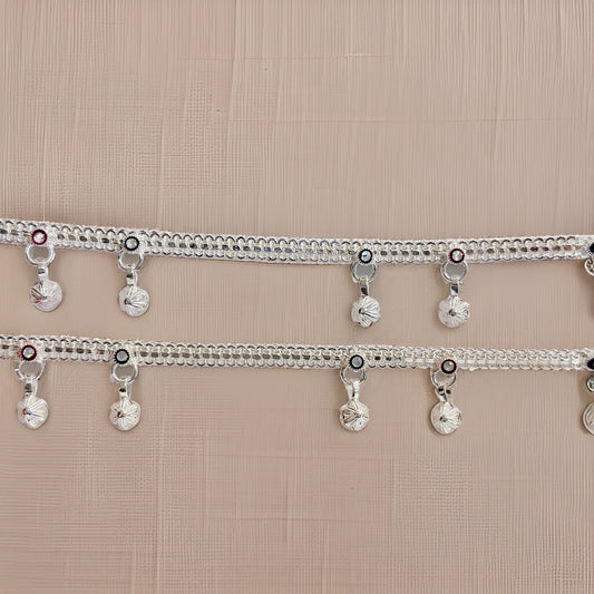 Silver Chain Kids Flower Bead Drop Fancy Payal 6.5 inches