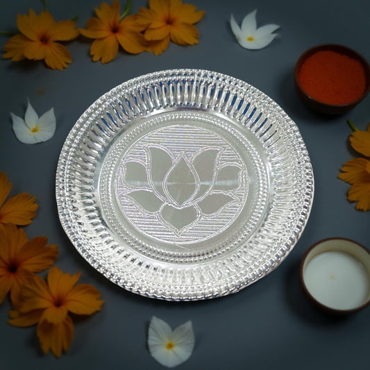 Anvi Silver Lotus Nakash Plate 3.7 Inches