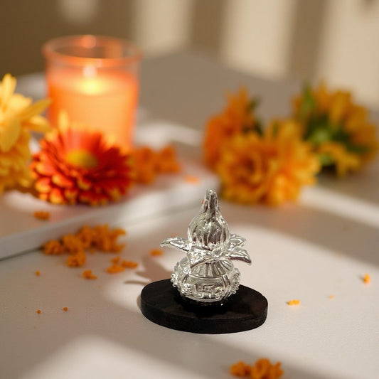 925 Silver Rose Wood Base Coconut Kalash - 1.3 inches