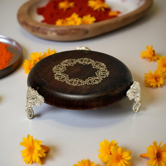 925 Silver Rose Wood Padhuka- 3.3 inches