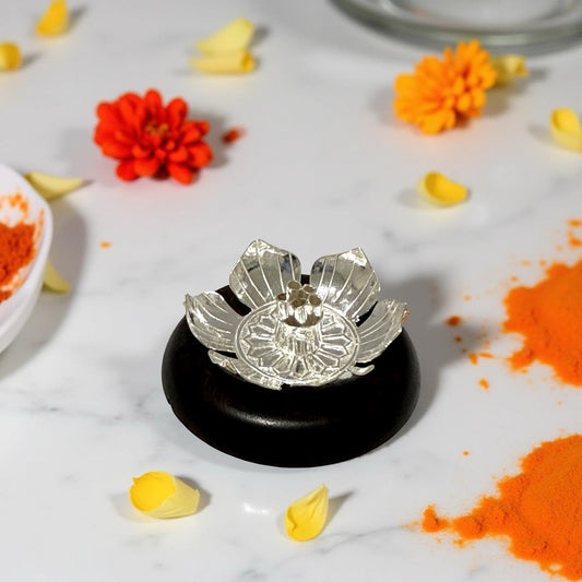 Silver Lotus Rose Wood Agarbathi Holder - 2 nches