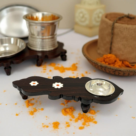 925 Silver Rose Wood Dhoob Arthi- 6.75 inches
