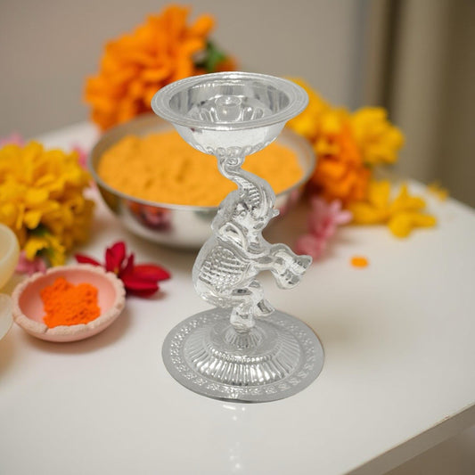 Vedha 925 Silver Elephant Diya 3.6 Inches