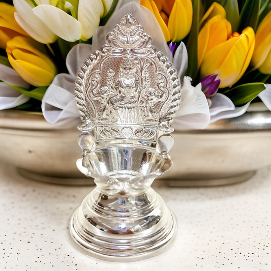 925 Silver Double Side Kamakshi Deepam 3.75 Inches