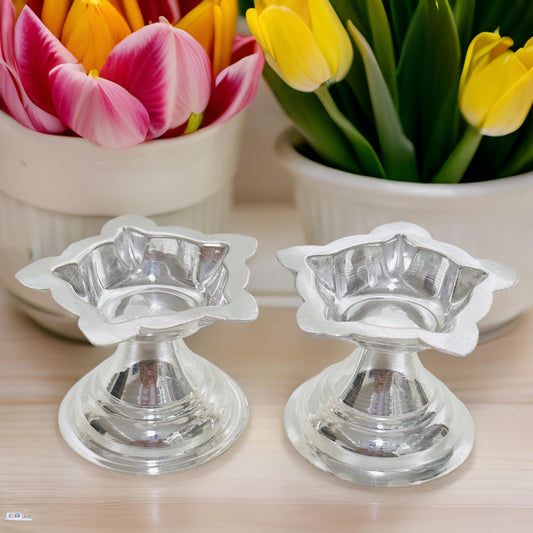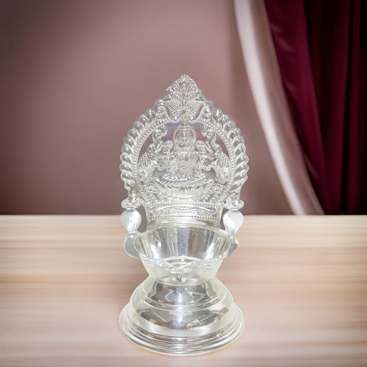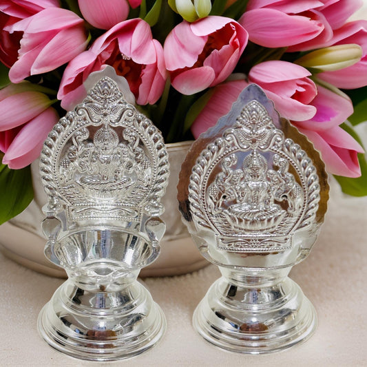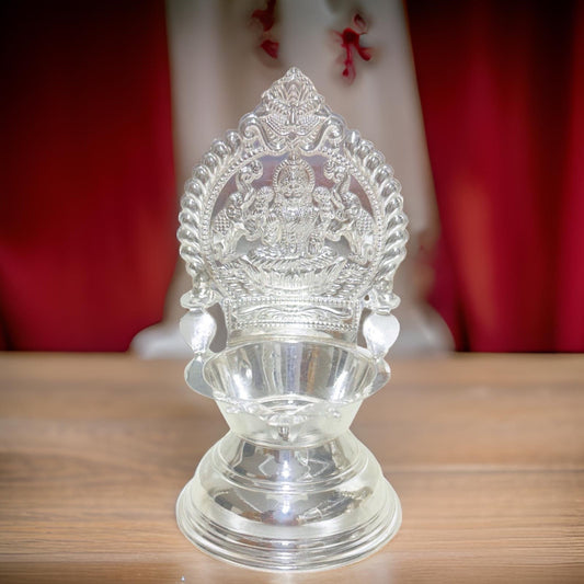 Silver Double Sided Gajalakshmi Kamakshi Deepam 3.5 Inches