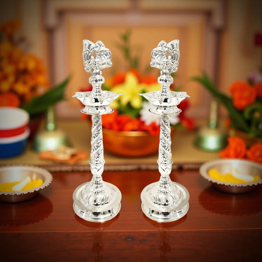 Swathi Silver KuthuVilakku-Kundhulu-Diya 10 Inches