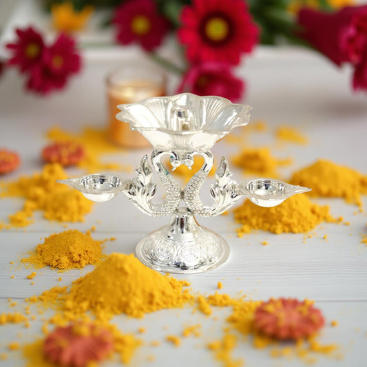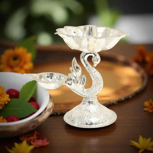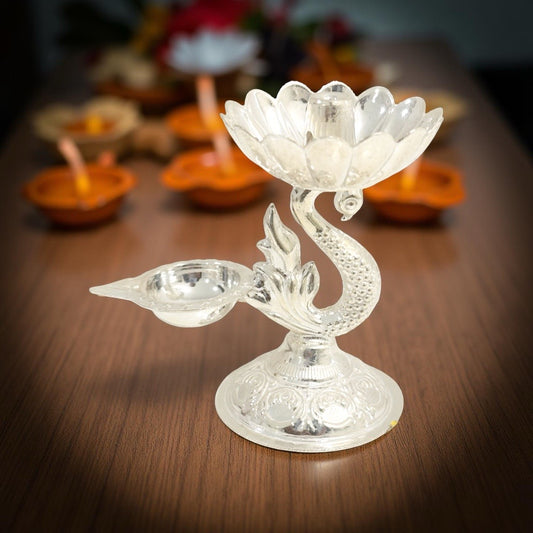 Aarna Fancy Peacock Silver Diya