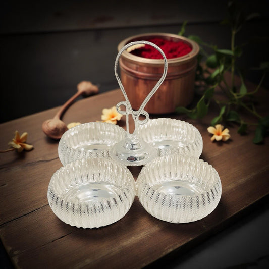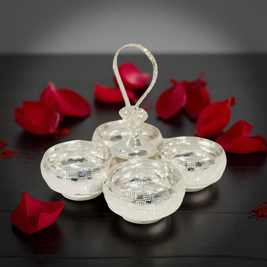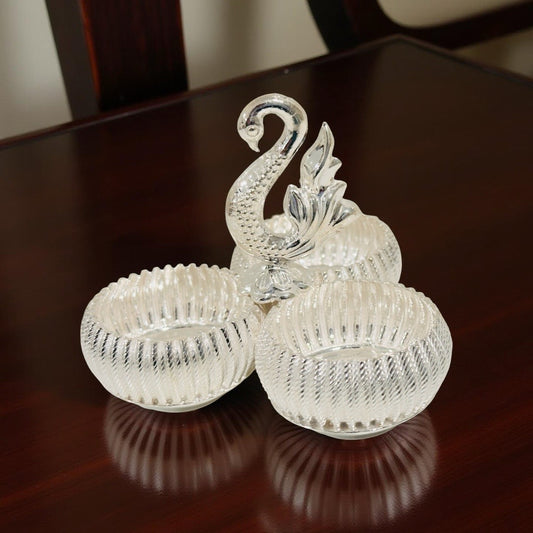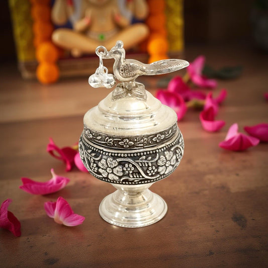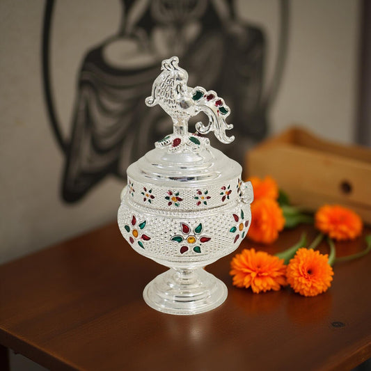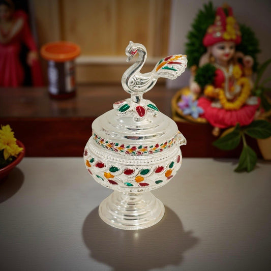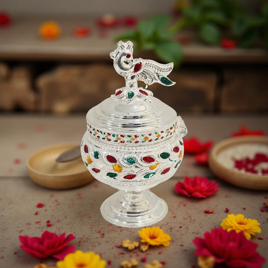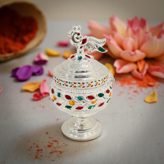 Silver Peacock Floral Enamel Haldi KumKum Box