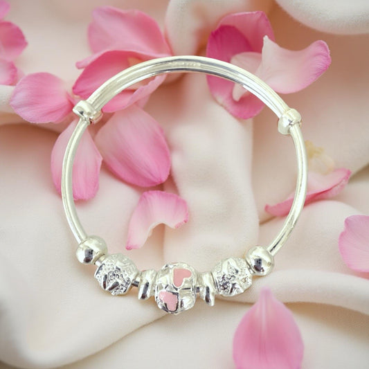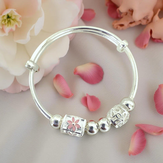 999 Pure Silver Pink Roller Charm Adjustable Baby Bracelet