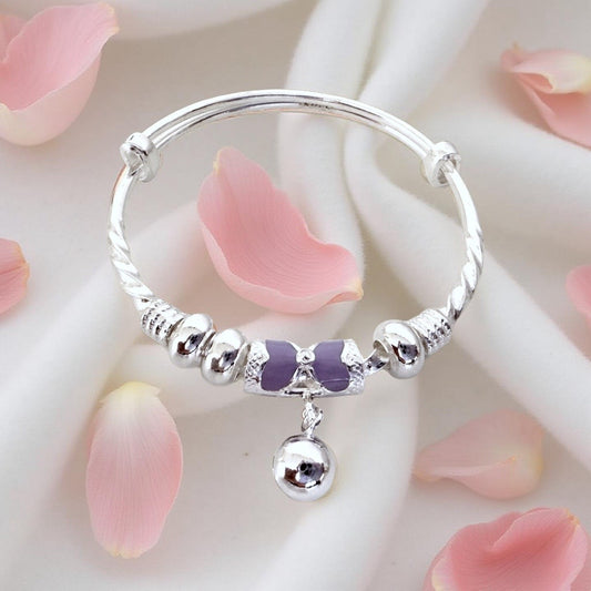 999 Pure Silver Purple Butterfly Charm Adjustable Baby Bracelet