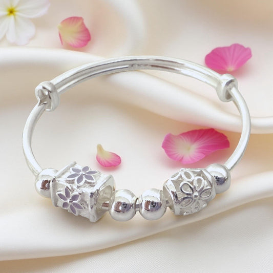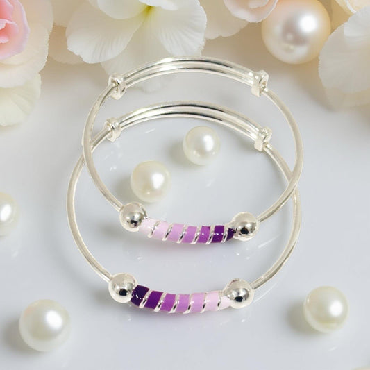 999 Pure Silver Purple Charm Adjustable Baby Bracelet