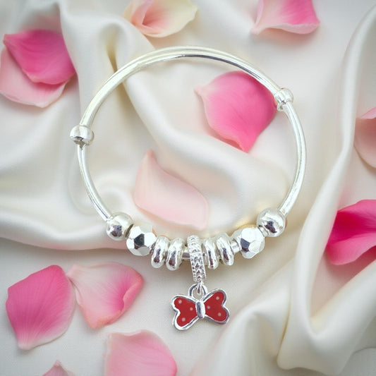 999 Pure Silver Red Butterfly Charm Adjustable Baby Bracelet