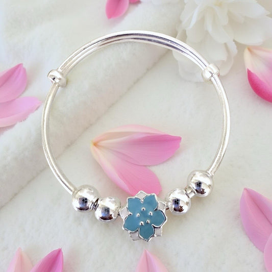 999 Pure Silver Blue Flower Charm Adjustable Baby Bracelet