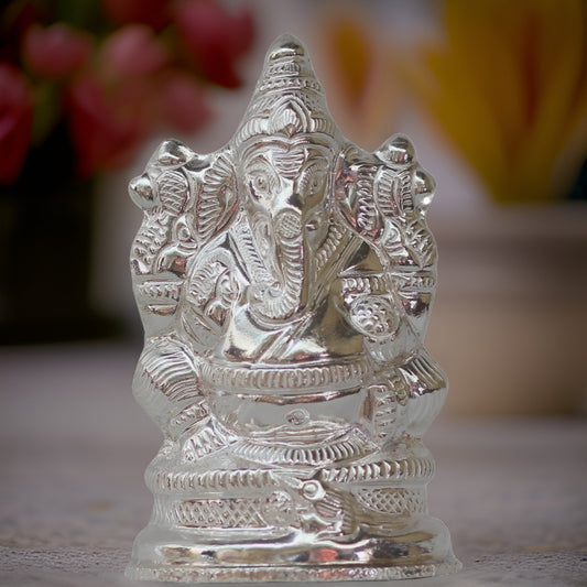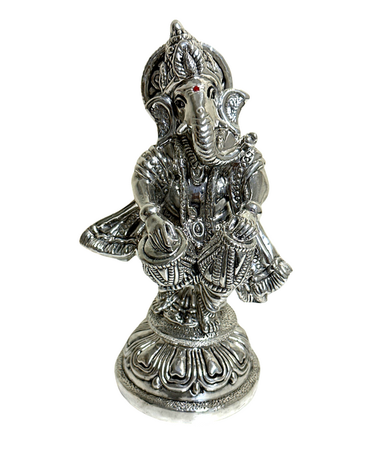 999 Silver Raja Ganpathy Idol-4.5 Inches