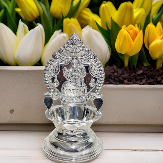 925 Silver Kamala Lakshmi kuthuvilakku- Kundhulu 6.75 Inches