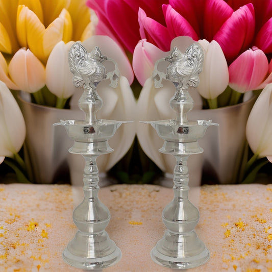 925 Silver Peacock kuthuvilakku- Kundhulu 7.75 Inches