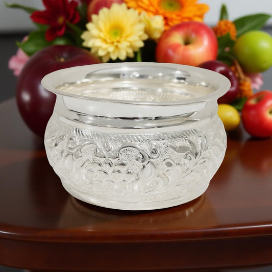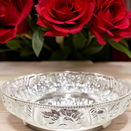 925 Silver Kavya Nakash Pooja Thali Plate 8.5 Inches
