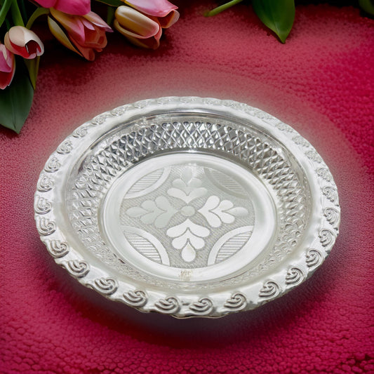 925 Silver Swetha Pooja Thali Plate 5.4 Inches
