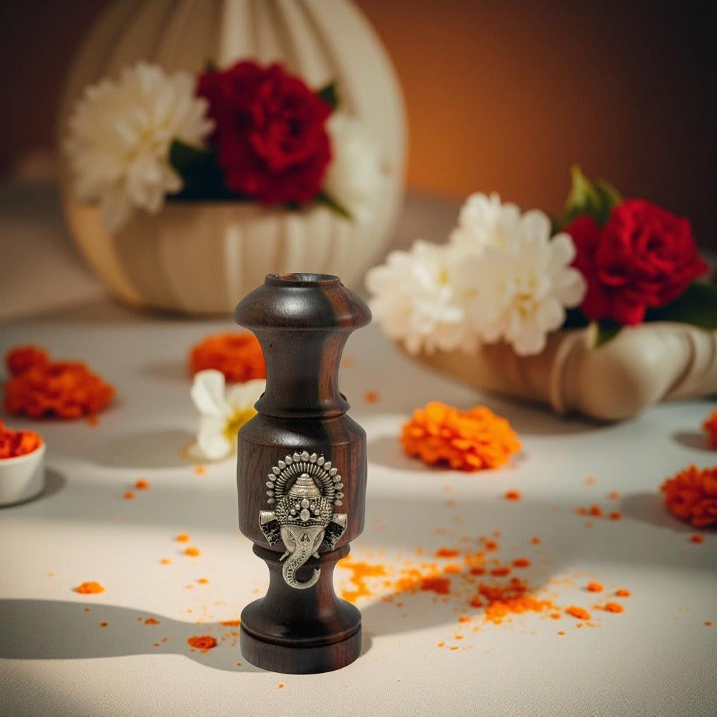 925 Silver Ganesh Wooden Incense Holder- 3 inches