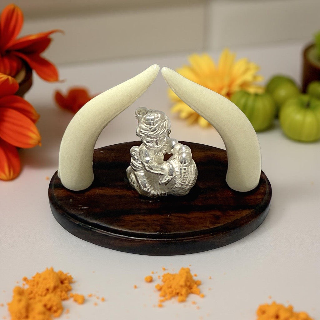925 Silver Wooden Krishna Idol - 1.75 inches